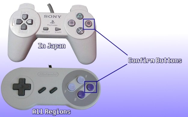 If that’s the case, then why wasn’t the O button simply moved to where the X button is in Japan, and/or vice versa? We may have Nintendo to thank for that. When Nintendo introduced the SNES, they added the X and Y buttons to the A and B buttons. This four-face-button layout would become the standard for most major consoles after this. For the Super Nintendo, the A button was confirm and B was cancel (or if you want to be cute, Accept and Back). This was universal for all regions. Now look at the SNES’ A and B buttons, where’s they’re located, and what they do. Now look at the Playstation’s X and O buttons, where they’re located, and what they did in Japan. It’s the same thing, the only difference here is what the buttons are called. So it made sense for Sony so stick to what was familiar at the time (I mean, they did work with Nintendo after all, and look how that turned out). Heck, even the designer for the Playstation was going to go with a controller design similar to the SNES’ controller before being told to add the grip-handles.