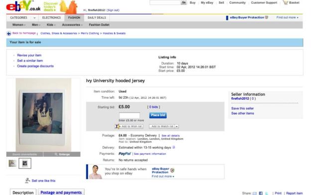 In the trailer released back in January, we learn that Leon’s scenarios will most likely be taking place in the Town of Tall Oaks. On April 2nd, a mysterious EBAY listing on Nohopeleft.com, by a seller called “Firefish 2012” showed a bloodied Tall Oaks University sweater. The EBAY listing is now off the site.