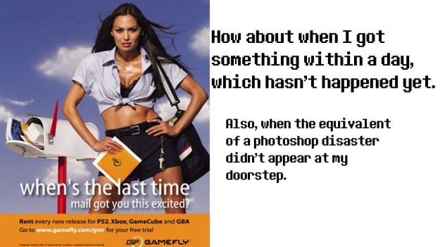 One thing Gamefly pushes in its commercials and website is that they have a lot of shipping stations. But they could use more. A lot more. Now, if you want to ship to New York City (or The Bronx specifically like some of us on the staff) and you can’t open a center in New York, your next best bet is to open one in New Jersey. Good idea right? They why the hell are we getting games from Pittsburgh!? Look at where it is compared to where New York is. It may not look far on a map, but when the next game you’re getting takes a week to make it to you mail box, then you got a problem. By comparison, Netflix delivers movies to The Bronx within 1-2 days. One of their stations is in New Jersey, and that’s where we get our physical copies of movies. But Maybe this isn’t a problem with location. No, this might be a problem with…