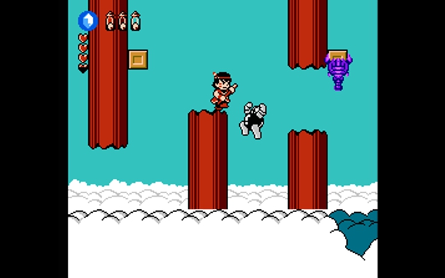 But none of that would prepare me for the hell that would be the Final Test. This took place in what looks to be the Heavens (which would make more sense in the original context). The difficulty spike on this was immense, probably the biggest in all of gaming. I mean, here you have this game with pretty easy stages and a couple of asshole bosses. Then you hit this stage, it’s like going from Super Princess Peach to Ninja Gaiden. The stage was abnormally long, you constantly bounced off clouds since there wasn’t much solid ground to speak of, and all of those abilities, save for two or three, were useless. Then there’s the uppermost part where the gravity is turned off. Now it’s very easy to just careen into otherwise easily avoidable enemies. I never got past this part and to this day have never finished the game.