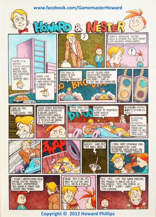 If Nintendo was never going to put another severed head on the cover, there was no way in hell this comic was going to be printed. Howard Philips (via Tiny Cartridge) uploaded to Facebook a comic he received when he left Nintendo to join Lucasfilm Games (now LucasArts). Howard & Nester was a series of comics featured in Nintendo Power featuring Howard Philips’ namesake and the little troublemaker Nester (named after the NES). It looks harmless at first glance, then you read what’s being said by the characters. In one panel, Nester says “Space Bastards,” then Howard calls Nester a “little shit”. Then Nester proceeds to remind Howard that he was “a junky for years and years.” Nothing being in our adult eyes, and pretty obvious is was just for the enjoyment of the NP team and Howard. The comic even references Howard leaving to join LucasFilm Games. It probably kicked ass working at Nintendo Power back then, what with the laid-back writing and humor in this comic. Still, it’s sad that the ol’ comic’s going down by then end the year.