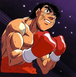 Makunouchi Ippo is an amiable, patient, goodhearted, but weak-spined milquetoast of a boy. Spending his free time helping his mother run the family fishing business (his Dad is long dead), he spends his early mornings hauling tons of fishing equipment to and from the family boat, before he heads off to school, where he is the subject of beatings and ridicule by the local thugs.