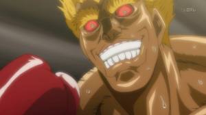 I’ve made a hoot and a half about how evenly handled all the characters in this show are. How they’re all three-dimensional and sympathetic, but every now and then, you want someone who’s just a fucking asshole. Someone you can hate without hesitation, someone you can point at and say “Him, yes him! He’s the bad guy!”. And Hajime no Ippo does, on occasion, have those. But the one who may be the worst of them all is…