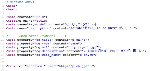 <meta name=”keywords” content=”ペルソナ,アトラス” />