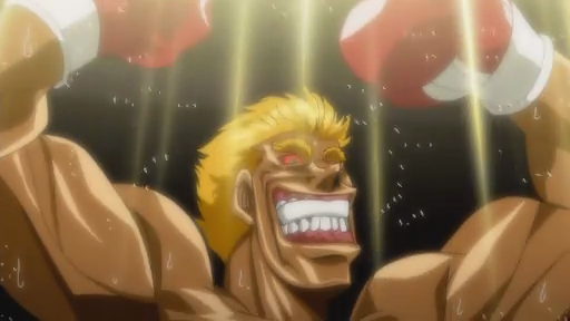 The buildup gives us a glance into his past as a young thug of unfathomable, yet unrefined talent, his fateful meeting with Coach Kamogawa and the origin of his drive to be the absolute best. We see him suffer for his passion, the crushing, destructive lengths he goes to for his weight management and the blood and tears of his endless hours of training. We see Takamura not as the idol of his peers, or the frustrating pupil of Kamogawa, but as a man with his own drives and dreams. It gives wonderful dimension to his character, as well as his relationship with his teacher, and when the gloves go on and the brutal, bloody battle begins, it’s easily as involved as anything the show has ever done. It helps that Hawk, every bit as physically powerful and gifted as Takamura but with frighteningly unorthodox fighting methods and an utter lack of morals, provides a magnificent challenge not only to the boxer, but the man himself. Oh, and did I mention he’s a monstrous lunatic?