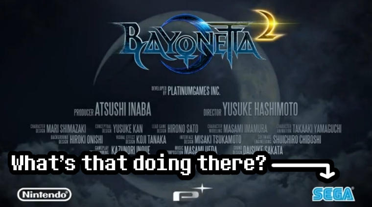 To bring you up to speed, Nintendo revealed this morning that Bayonetta 2 will be coming to the Wii U and Nintendo will be publishing the game (much to the chagrin of some gamers out there). I was very happy to see that the game is very much alive and not cancelled as it was feared before Summer began. I was also happy to see the game in much more capable hands since SEGA has no idea what the hell to do with Platinum’s games lately. This had me thinking that SEGA has let go of the franchise (since they were the publisher of the first game and held the rights to it). Then I saw the European trailer Kotaku used to break the news. At the end of the trailer, you can see SEGA’s logo. Same applies to Japan. So what gives? Update: The U.S. trailer also has the SEGA logo at the end.